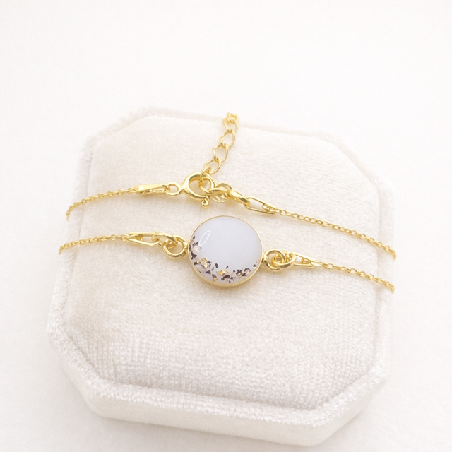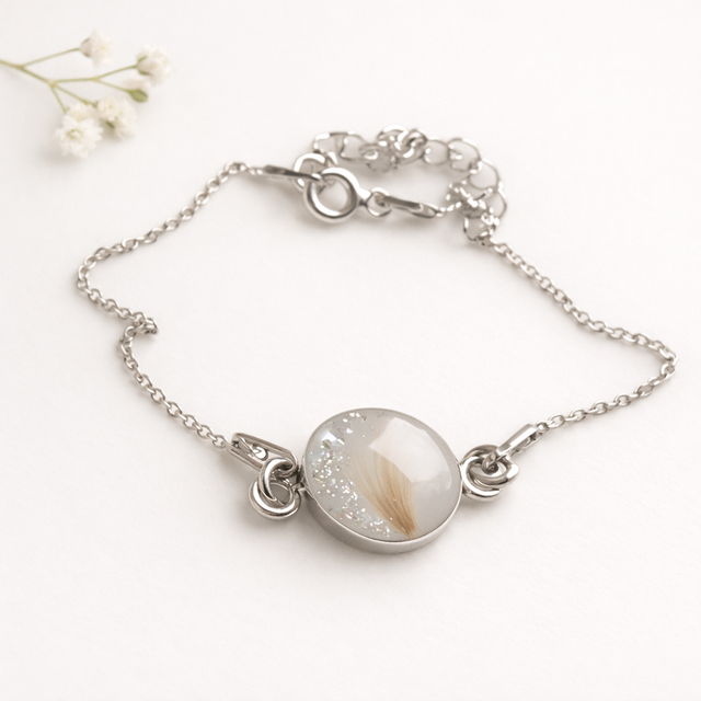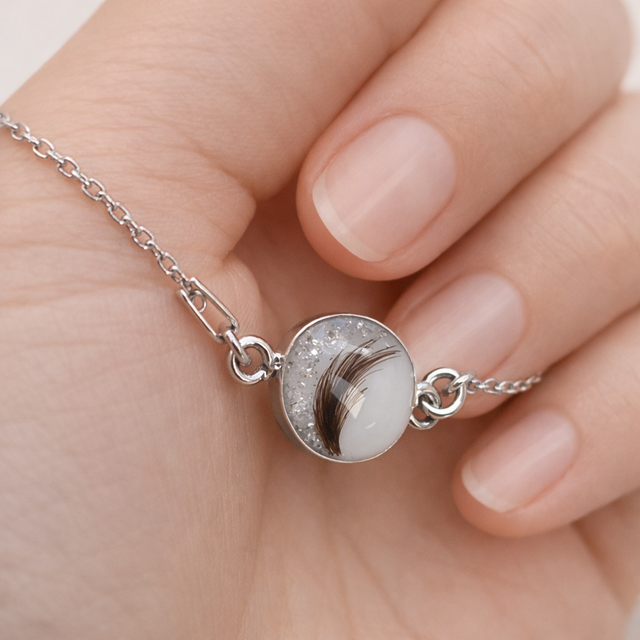 Smykket kan lages med eller uten morsmelk og tilpasses med personlige detaljer som gir hvert armbånd sin egen unike historie.