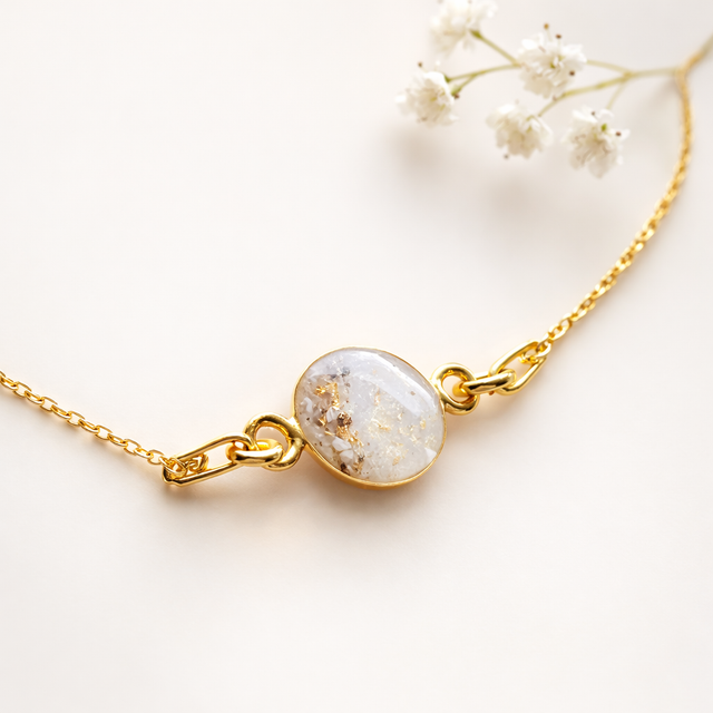 Smykket kan lages med eller uten morsmelk og tilpasses med personlige detaljer som gir hvert armbånd sin egen unike historie.
