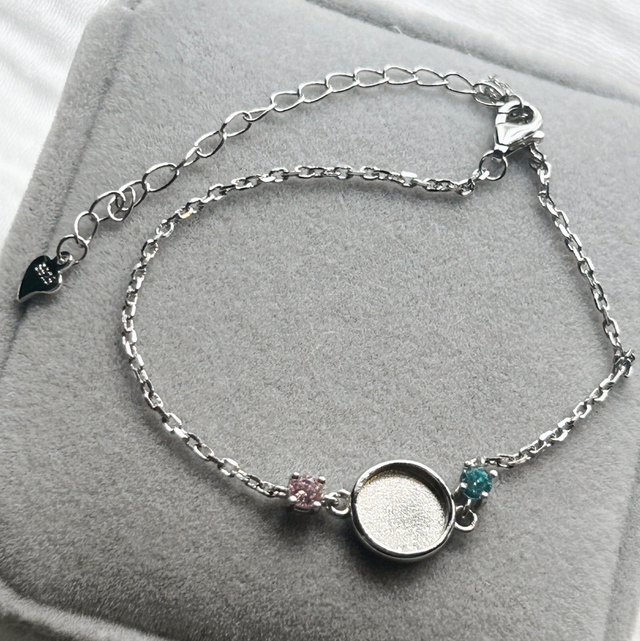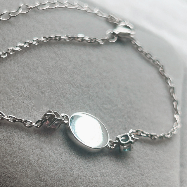 ✿ Armbånd i nikkelfritt 925 solid sterlingsølv ~ rhodiumbelagt / 8mm og 2 fødselsteiner (mars - oktober) som også kan representere fargen til en jente og en gutt