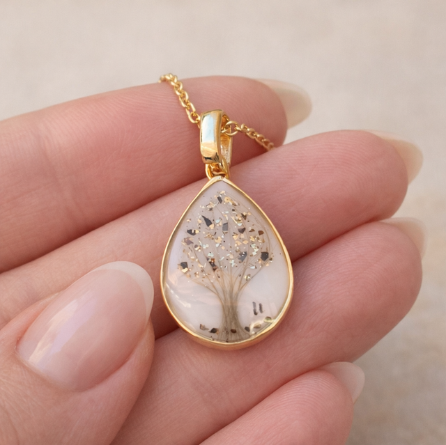 Kan lages med eller uten morsmelk og tilpasses med personlige detaljer som gjør hvert smykke unikt.