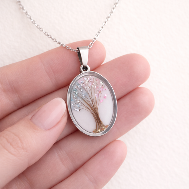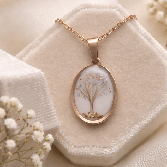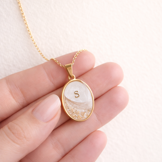 Medaljongen kan lages med eller uten morsmelk og tilpasses med små personlige detaljer som gir smykket en unik og meningsfull betydning.
