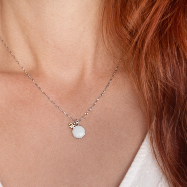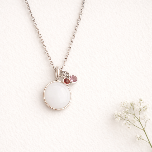 Medaljongen kan lages med eller uten morsmelk og tilpasses med personlige detaljer som gjør hvert smykke unikt.