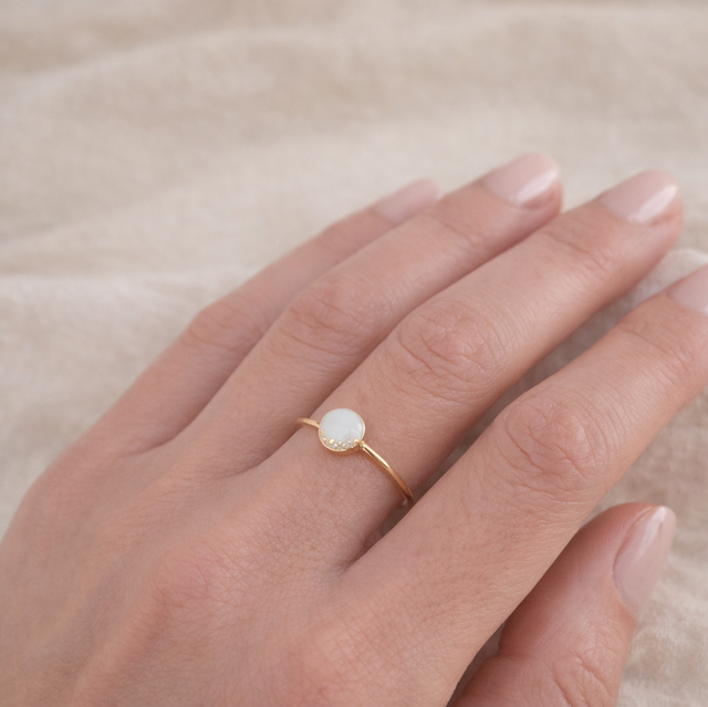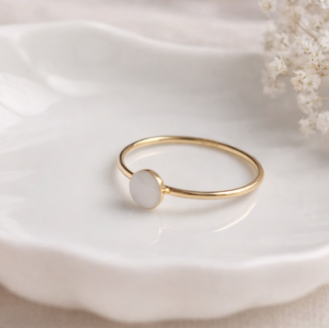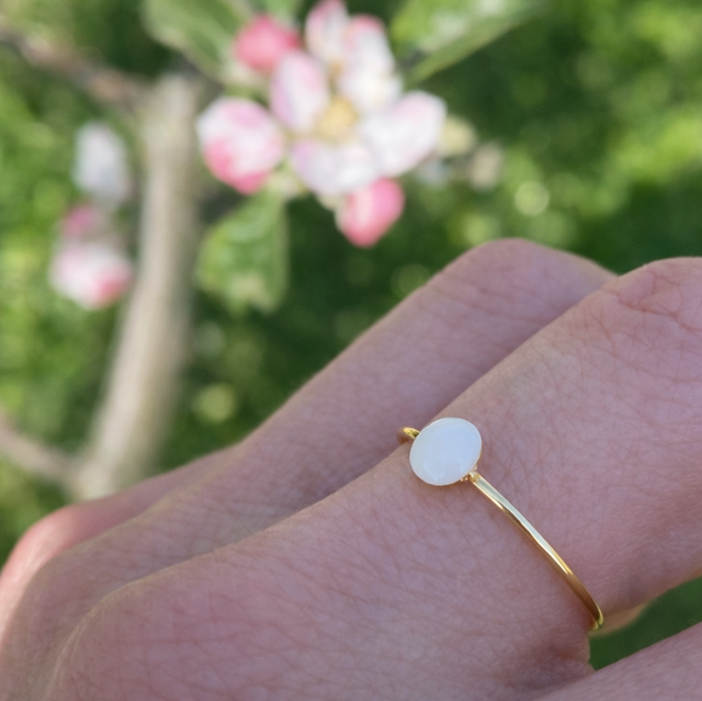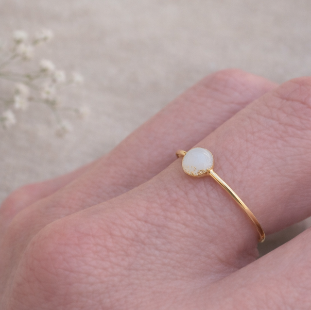 Et smykke skapt for å bæres alene – eller i samspill med andre – som en stille påminnelse om det som betyr mest. Ringen kan lages med eller uten morsmelk, og er skapt for å følge deg i hverdagen som en diskret påminnelse om det som betyr mest.