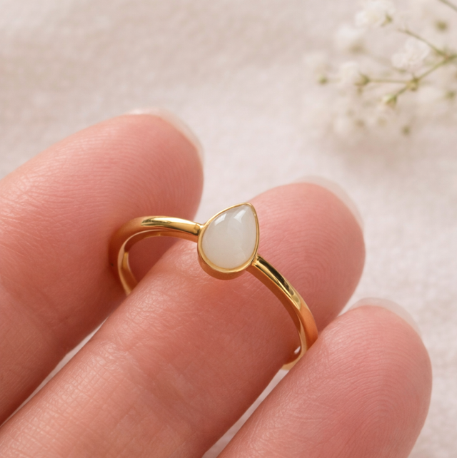 Den dråpeformede innfatningen symboliserer morsmelk og livets begynnelse. Ringen kan lages med eller uten morsmelk og tilpasses med små, personlige detaljer.