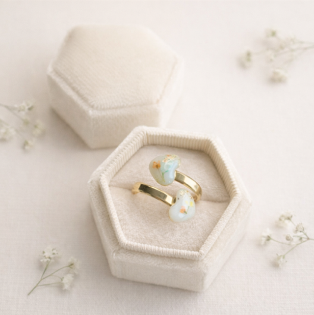 Ring Love kan skapes med eller uten morsmelk, og tilpasses med små, personlige detaljer som gjør hvert smykke unikt og meningsfylt.