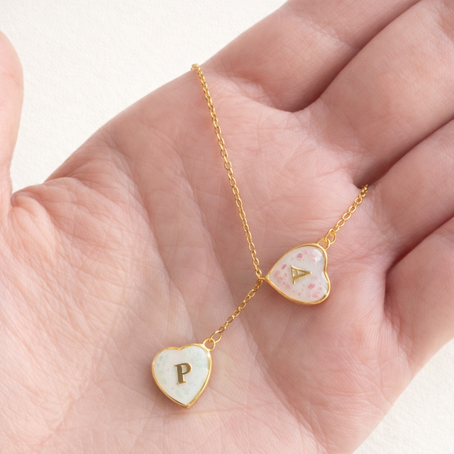 Hvert hjerte består av to sider som kan fylles med morsmelk eller andre personlige inklusjoner. Sammen kan de symbolisere to eller fire minner, bånd eller øyeblikk – stille bevart tett mot hjertet.