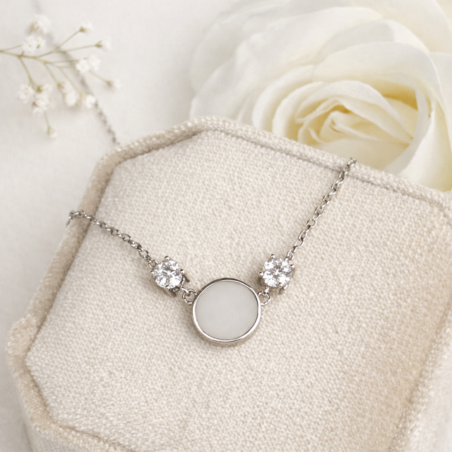 Smykket kan lages med eller uten morsmelk og tilpasses med små, personlige detaljer som gjør hvert smykke unikt og meningsfullt.