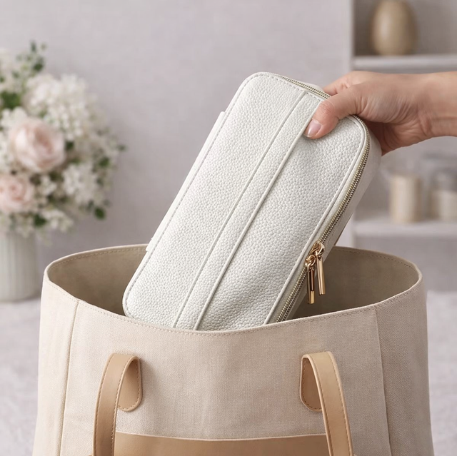 Smykkeskrin: Smykkeskrin med stor kapasitet i PU-skinn og 12 små smykkeposer
