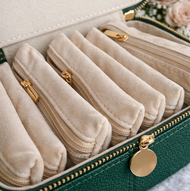 ✿ 12 myke oppbevaringsposer: kan bæres separat eller oppbevares inne i etuiet for å beskytte smykkene dine mot oksidasjon (armbånd, ringer, øredobber og annet tilbehør)